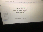 As a person who has taught themselves programming for 5 years before going into college, I write this book to encourage readers to do the same. This book outlines the 3 areas in which a learner may get stuck in while going through self-motivated learning. This book will give principles regarding concepts such as mono-language vs. multi-language pedagogy, and project-based learning.